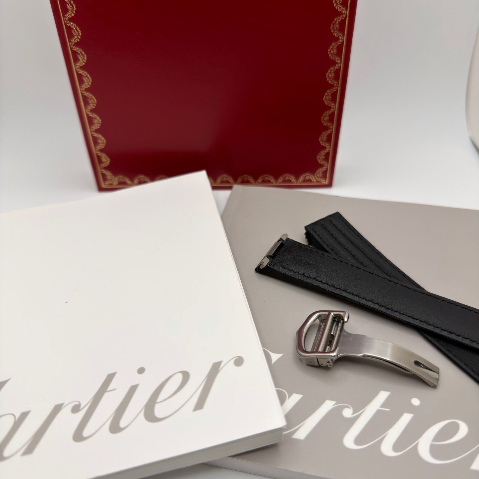 -Cartier Box & Papers + Extra Cartier Strap