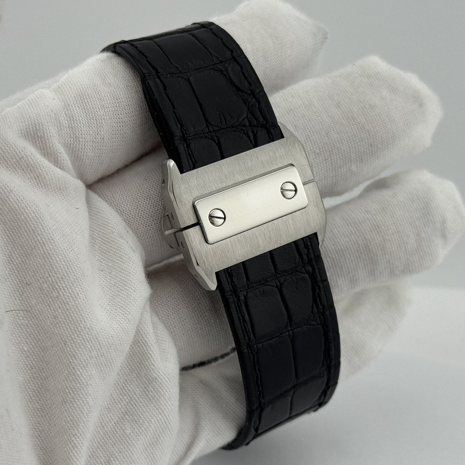 Cartier Santos 100 XL 2656 38mm Stainless Steel White Roman Dial Leather Strap Cartier Sale! from 599500 /per This item is a recurring or deferred purchase. By continuing, I agree to the cancellation policy and authorize you to charge my payment method at the prices, frequency and dates listed on this page until my order is fulfilled or I cancel, if permitted. +1 (619) 232-1273 This item is currently on backorder but you can still purchase it now and we'll ship as soon as more become available. Style Number: 2656Serial: 519208SX Model: Cartier Santos Case Material: Stainless Steel Strap: Leather Bezel: Stainless Steel Dial: White Roman Face: Sapphire Crystal Case Size: 38mm Includes: -Certified Appraisal -1 Year WarrantySKU 22942 / 17770TBJ082025