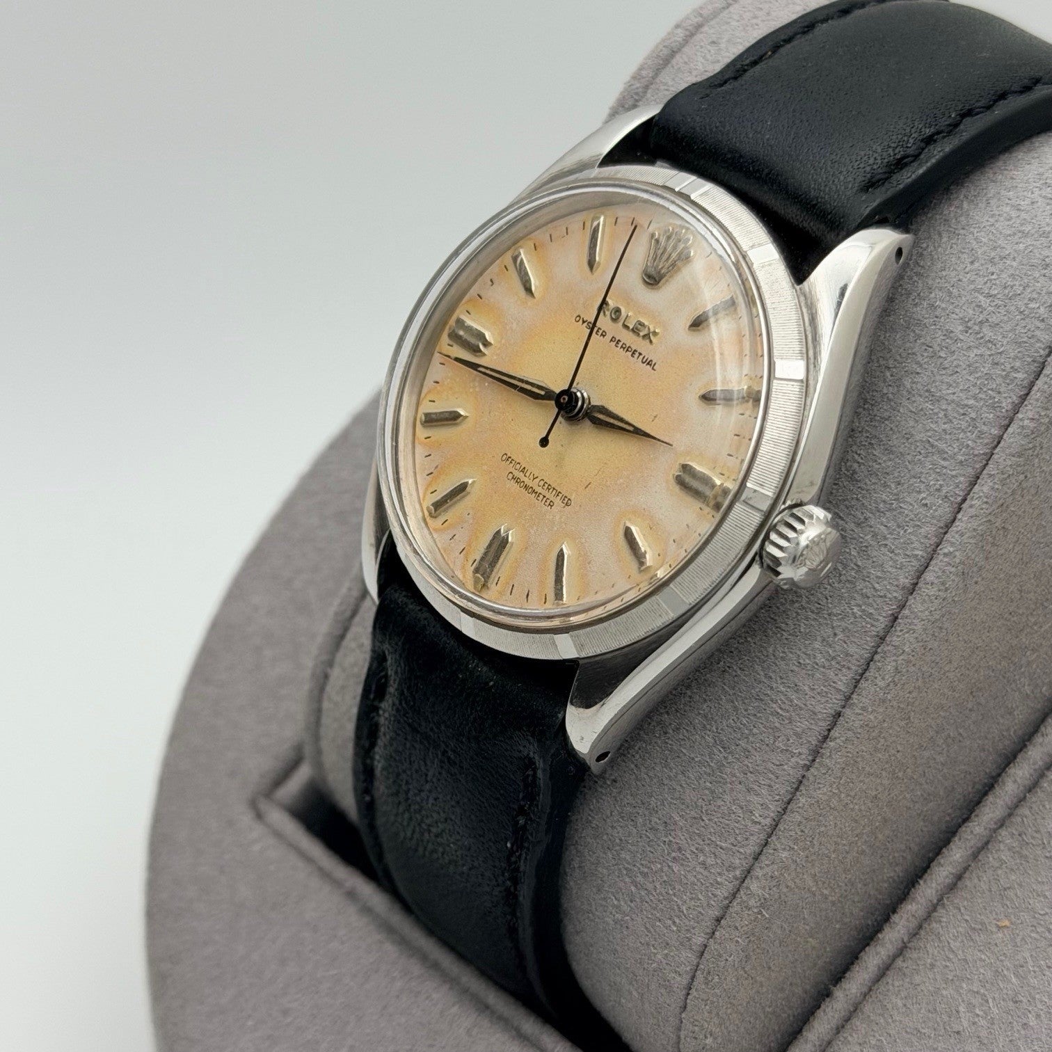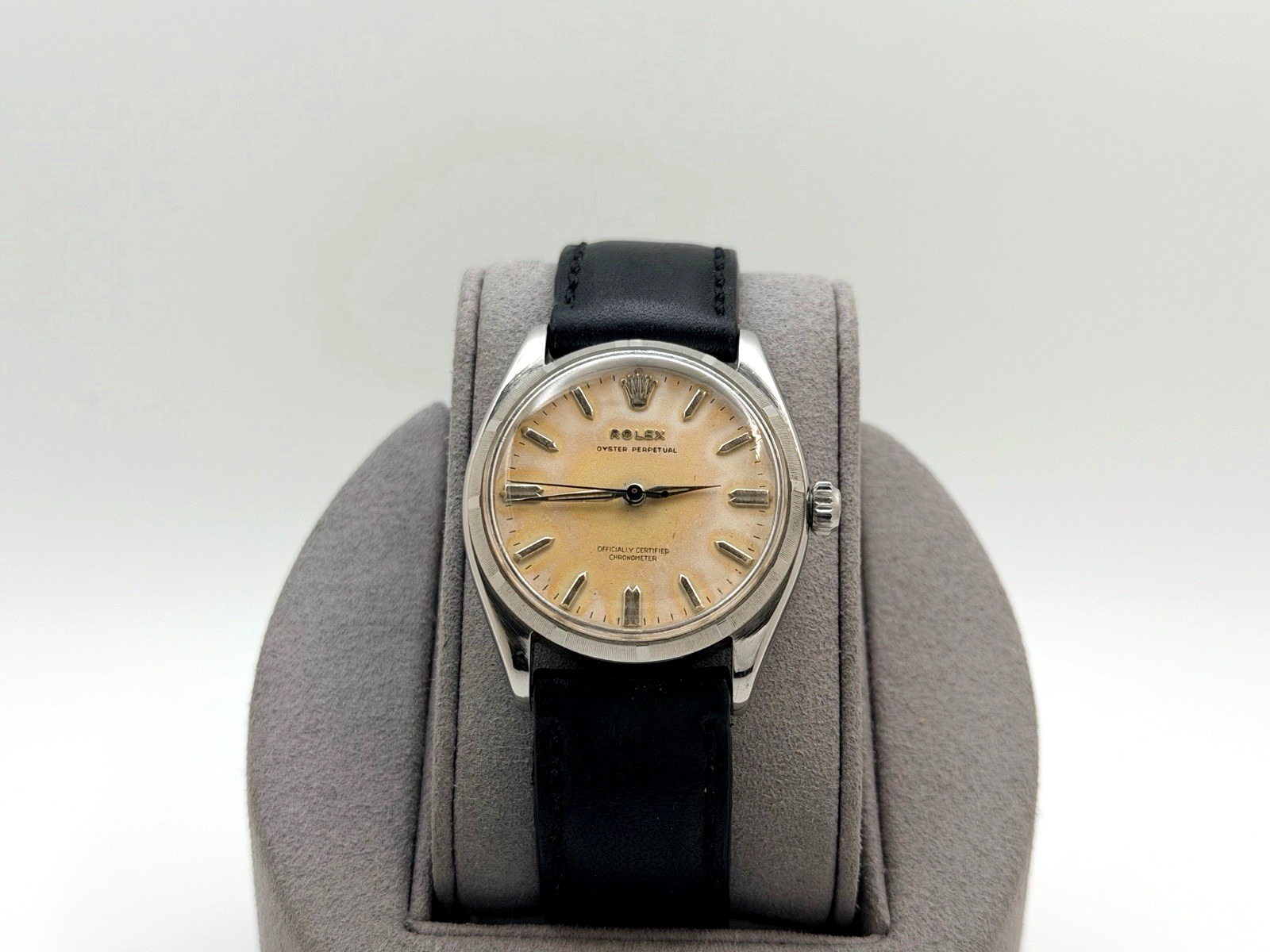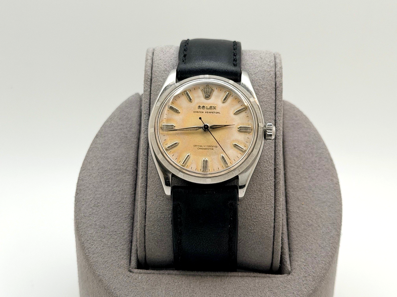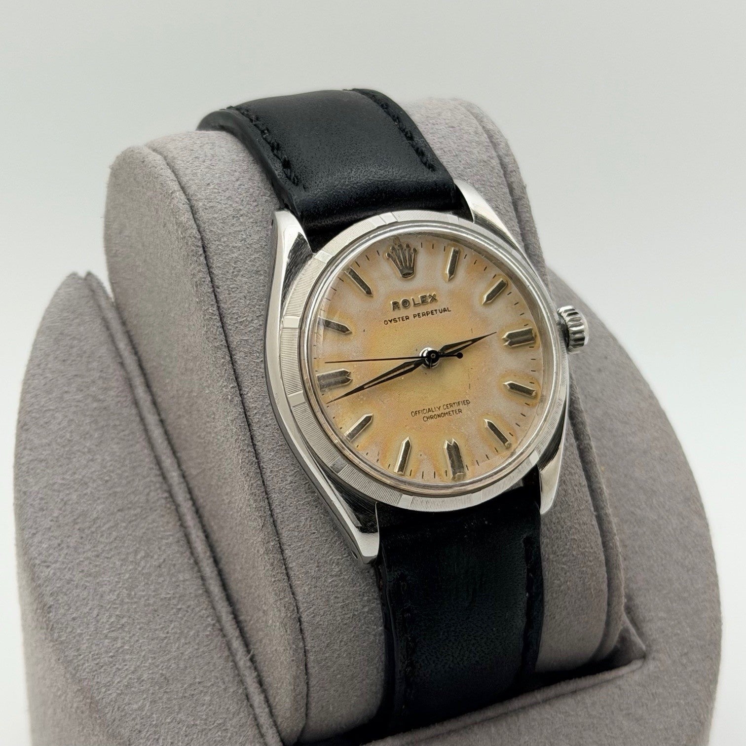 Vintage Rolex Oyster Perpetual 6565 34mm Tropical Dial Stainless Steel Leather Rolex Sale! from 499500 /per This item is a recurring or deferred purchase. By continuing, I agree to the cancellation policy and authorize you to charge my payment method at the prices, frequency and dates listed on this page until my order is fulfilled or I cancel, if permitted. +1 (619) 232-1273 This item is currently on backorder but you can still purchase it now and we'll ship as soon as more become available. Style Number: 6565 Serial: 341*** Year: 1958 Model: Vintage Rolex Oyster Perpetual Case Material: Stainless Steel Band: Custom Leather Strap Bezel: Stainless Steel Dial: Tropical Crystal: Acrylic Case Size: 34mm Includes: - Elegant Watch Box- Certified Appraisal - One Year WarrantySKU 23454 / 13537TSTADEN120125